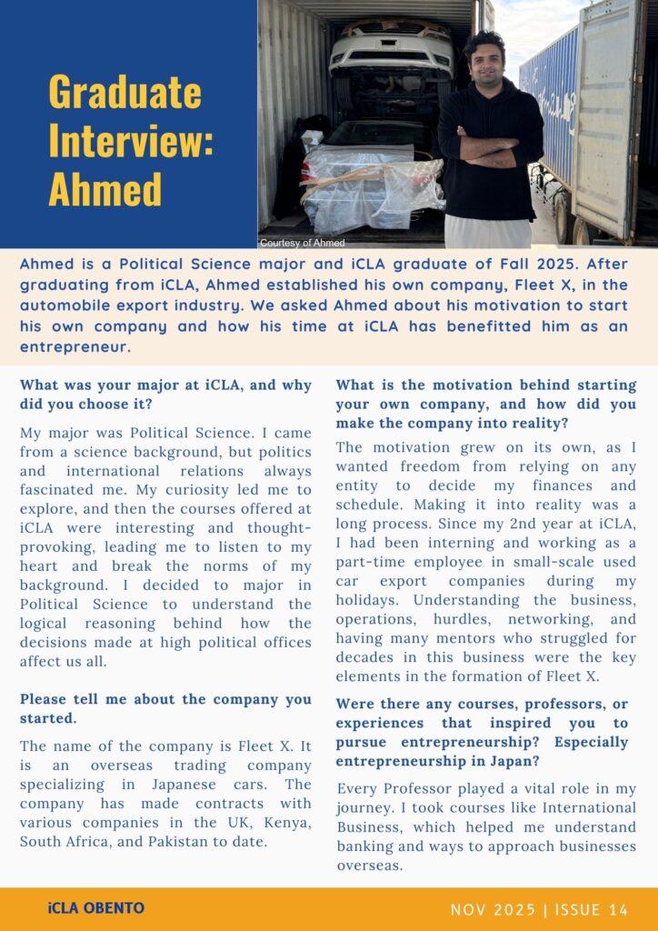 The iCLA Obento is a newsletter dedicated to highlighting the successes of iCLA’s community members, celebrating our unique backgrounds, and learning more about the members of iCLA’s community.